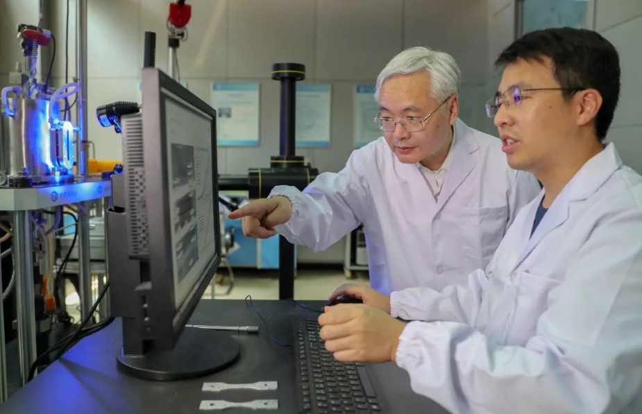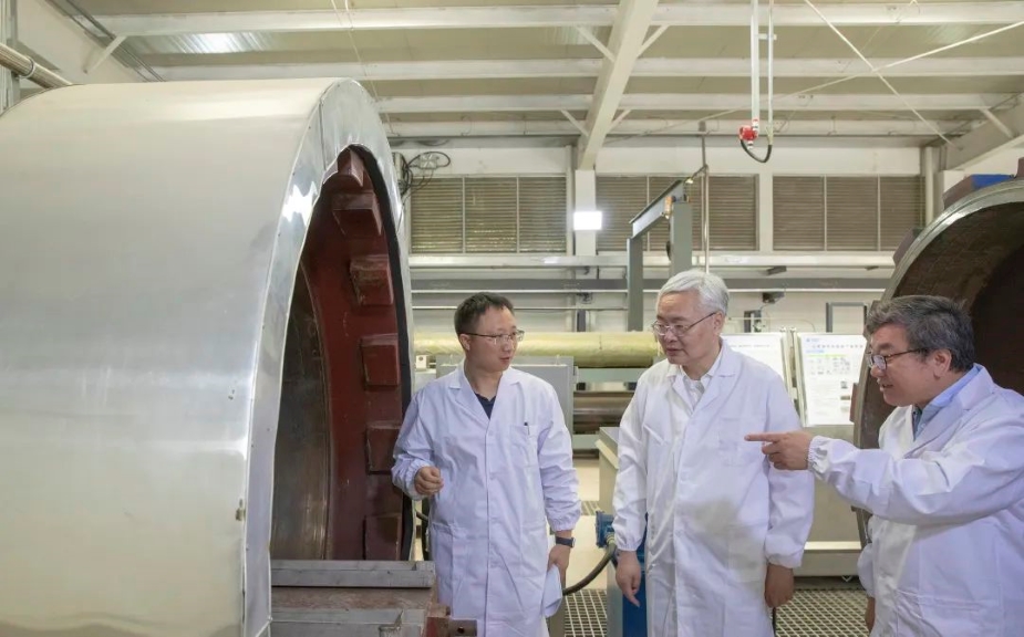 陈学东院士在氢能实验室与青年工程师进行高压储氢容器氢循环疲劳性能测试技术交流